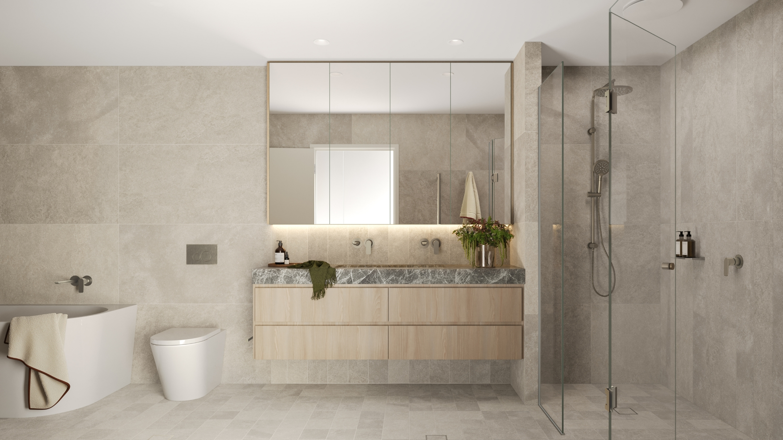 Designed for entertaining, this three-bedroom residence centres around an open-plan kitchen, living and dining area that feels connected and welcoming, flowing directly onto a dual-aspect balcony.